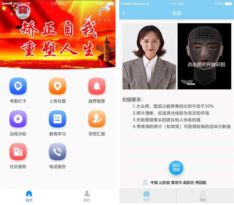 此系统包含考勤打卡/上传位置/越界报警/远程点验/教育学习/思想汇报/社区服务/电话报告等。