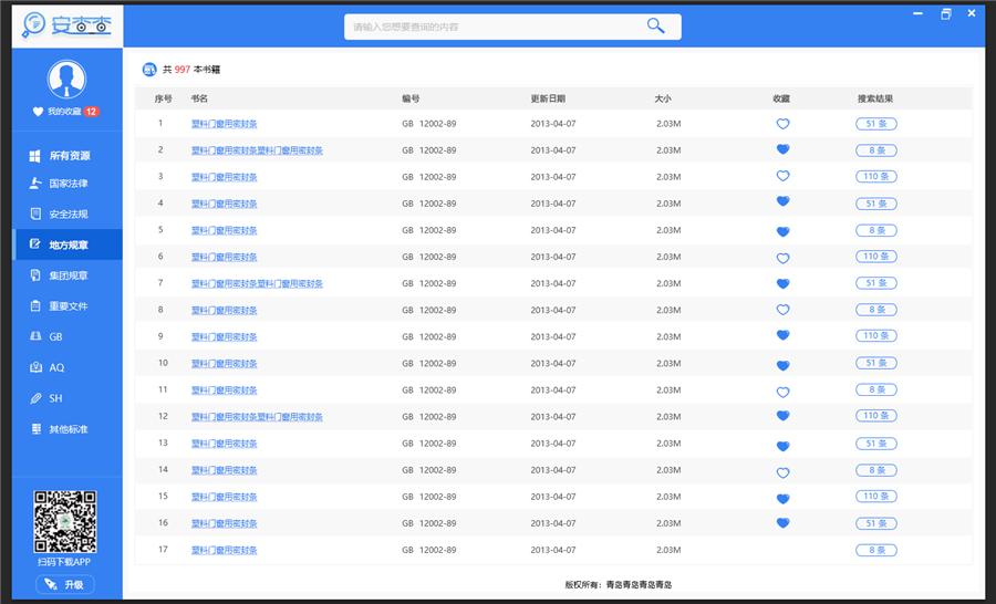 安全法律法规国标数据平台集国家法律、安全法规、地方规章等功能,轻松掌握各类法律法规,生活好帮手。